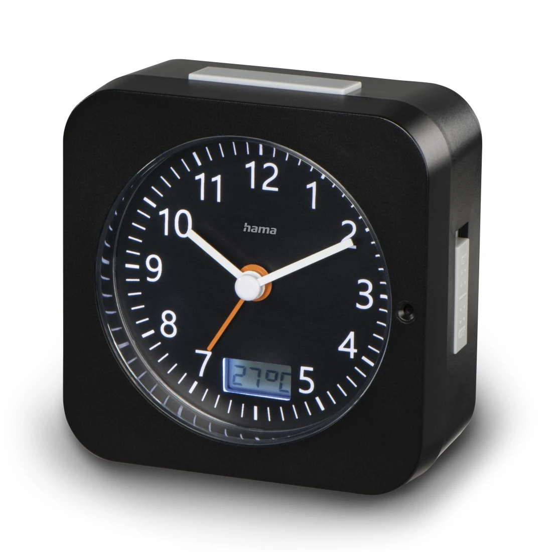 Gestaltung (Farbe, Design, Motiv, Serie) Datumanzeige Tag, Monat Farbe Schwarz Farbe Ziffernblatt Schwarz Farbton Schwarz Hintergrundbeleuchtung Weiß Physikalische Eigenschaften Anzahl programmierbarer Alarmzeiten 1 Betriebsart Funk Display Analog und Digital Material Gehäuse Kunststoff Temperatur Auflösung 1 ° Temperatur Genauigkeit (Innen- und Außenbereich) ±5℃ Zusatzfunktionen DCF-Funkuhr, Schlummerfunktion, Thermometer (-10°C bis +50°C) Abmessung & Gewicht Breite x Tiefe x Höhe 9,5 x 4,5 x 9,5 cm Gewicht 192 g Energie Anzahl Batterien 1 Batterietyp AA Mignon Stromversorgung Batterie -